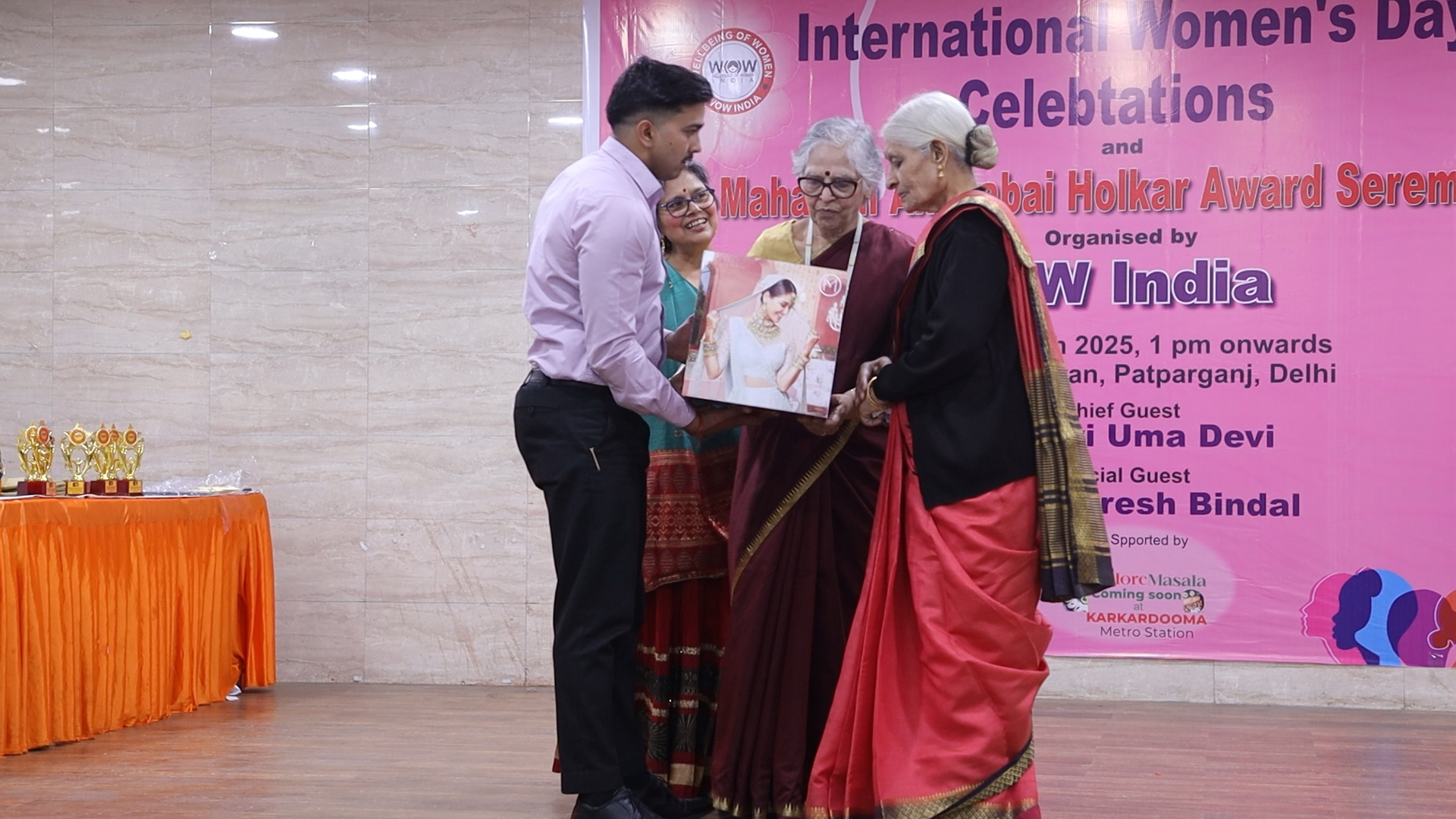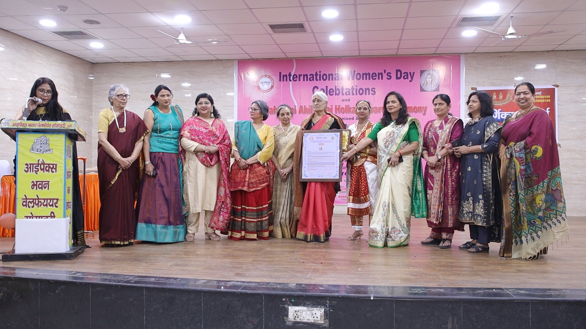 बजे से अपना वार्षिक कार्यक्रममहारानी अहिल्याबाई होलकर अवार्ड्सका सफल आयोजन किया गया । कार्यक्रम लंच के साथ आरम्भ हुआ, और उसके बाद कार्यक्रम की मुख्य अतिथि के रूप में साध्वी उमा देवी ने और विशिष्ट अतिथि के रूप में प्रसिद्ध समाजसेवी श्री सुरेश बिन्दल जी ने अपने वक्तव्यों के द्वारा सदस्यों का मार्गदर्शन किया । साथ ही पार्षद श्रीमती बबीता खन्ना, पार्षद श्रीमती अपर्णा गोयल और पार्षद श्रीमती शशि चाँदना को भी सम्मानित किया गया । संस्था की Secretary General डॉ पूर्णिमा शर्मा ने संस्था के द्वारा आयोजित किए गए वर्ष भर के कार्यक्रमों के विषय में जानकारी दी । संस्था की Chairperson डॉ शारदा जैन ने महिलाओं को स्वास्थ्य के प्रति जागरूक होने के विषय में बात की तो President Dr. S. Lakshmi Devi ने महिला दिवस की प्रासंगिकता पर बात की । एक नौ दस बरस के बालक उज्ज्वल गुप्ता ने भी प्रेरणादायक शब्दों से सदस्यों का उत्साहवर्धन किया । इसके बाद रंगारंग कार्यक्रम आरम्भ हुए । कार्यक्रम क्योंकि महारानी अहिल्याबाई होलकर अवार्ड्स का था, तो सर्वप्रथम डॉ एस लक्ष्मी देवी को Maharani Ahilyabai Holkar Lifetime achievement award से सम्मानित किया गया और इनके लिए संस्था की Joint Secretary डॉ दीपिका कोहली ने Citation पढ़ा । उसके बाद Excellence और Appreciation अवार्ड्स का सिलसिला शुरू हुआ, जिनमें डा मंजु बारिक को स्वास्थ्य सेवा के क्षेत्र में, इंद्रप्रस्थ ब्रांच की श्रीमती पूनम गुप्ता को Music & Arts के क्षेत्र में, IPEX ब्रांच की श्रीमती पूनम अग्रवाल को शिक्षा के क्षेत्र में तथा सूर्य नगर ब्रांच की श्रीमती मीरा गुप्ता को समाज सेवा के क्षेत्र में Excellence Award से सम्मानित किया गया । डा दीपशिखा गोयल और डा रश्मि नागपाल अरोड़ा को स्वास्थ्य सेवा के क्षेत्र में, IPEX ब्रांच की श्रीमती शिल्पी गुप्ता तथा योजना विहार ब्रांच की श्रीमती वनिता जैन को समाज सेवा के क्षेत्र में, सूर्य नगर ब्रांच की श्रीमती संगीता गुप्ता को शिक्षा के क्षेत्र में, इंद्रप्रस्थ ब्रांच की श्रीमती हेमा गोयल और सूर्य नगर ब्रांच की श्रीमती अक्षिका मित्तल को Music & Arts के क्षेत्र में Appreciation Award से सम्मानित किया गया । इस अवसर पर डा पूर्णिमा शर्मा द्वारा लिखे गए कार्यक्रम के Theem song “आया वसन्तको अपनी सुमधुर आवाज़ में प्रस्तुत करने के लिए जानी मानी गायिका और Voice artist स्वस्ति श्री तथा इस गीत के Recordist editor श्री निहित गुप्ता को Guest of Honour से सम्मानित किया गया । लगभग 20 सदस्यों को WOW India Ambassador Award से सम्मानित किया गया । साथ ही Mr. Ujjwal Gupta को उनकी Motivational speech के लिए और सूर्य नगर ब्रांच की सुश्री सीमा पवार को उनकी Choreography के लिए सम्मानित किया गया । कार्यक्रम का समापन संस्था की Senior Vice President श्रीमती बानू बंसल के धन्यवाद प्रस्ताव के साथ हुआ । कार्यक्रम का सफलतापूर्ण संचालन संस्था की Cultural Secretary श्रीमती लीना जैन ने किया ।