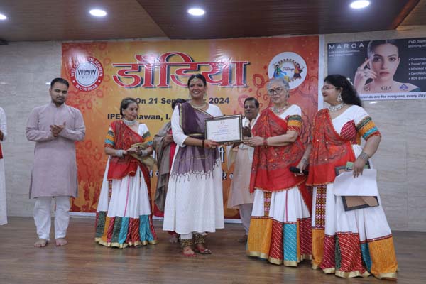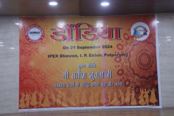अभी श्राद्ध पर्व चल रहे हैं, और 3 अक्टूबर से भगवती की उपासना के पर्व नवरात्र आरम्भ हो जाएँगे जब डाण्डिया और गरबा की धूम रहेगी | इसी को ध्यान में रखते हुए 21 सितम्बर को WOW India द्वारा IPEX भवन, पटपड़गंज में डाण्डिया का एक भव्य कार्यक्रम आयोजित किया गया | कार्यक्रम के मुख्य अतिथि थे कथक के लखनऊ घराने के गुरु श्री सतीश शुक्ला जी, जो पद्मभूषण पण्डित बिरजू महाराज जी के भाँजे हैं और उनकी परम्परा यानी कालिका–बिन्दादीन घराने की नृत्य परम्परा को आगे बढ़ाने का कार्य सपरिवार कर रहे हैं | श्री सतीश शुक्ला के हम हृदय से आभारी हैं कि उन्होंने अपने व्यस्त समय में से समय निकाल कर न केवल सपरिवार कार्यक्रम की शोभा बढ़ाई बल्कि अपनी दो शिष्याओं की नृत्य प्रस्तुति भी कराई |कार्यक्रम के आरम्भ में मुख्य अतिथि का सम्मान किया गया तथा मुख्य अतिथि और WOW India की Chairperson डा शारदा जैन ने दर्शकों को सम्बोधित किया | उसके बाद विधिवत कार्यक्रम का आरम्भ हुआ |