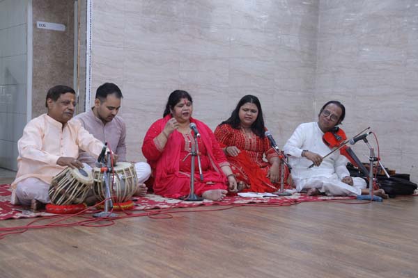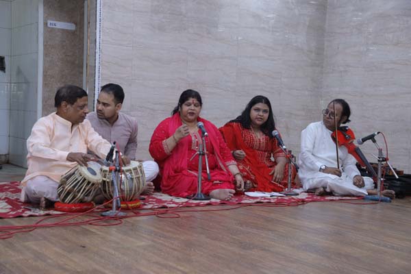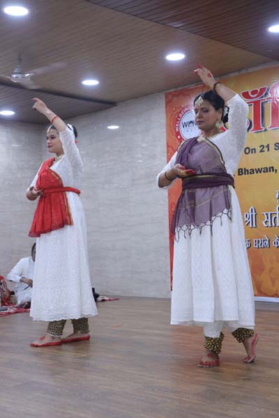 कार्यक्रम का आरम्भ भी श्री शुक्ला जी की दो शिष्याओं सुश्री इशिका नेगी और काजल अग्रवाल द्वारा प्रस्तुत माँ वाणी के वन्दन के साथ हुआ | नृत्यांगनाओं के साथ तबले पर स्वयं उनके गुरु श्री शुक्ला जी ने संगत की – जो किसी भी कलाकार के लिए गर्व का विषय होता है कि गुरु स्वयं संगत करे | साथ ही वॉयलिन पर साथ दिया जनाब अफ़ज़ाल ज़ुहूर अहमद ने – जो ख़ुद वॉयलिन के दिल्ली घराने के उस्ताद ज़ुहूर अहमद ख़ान साहब के सुपुत्र हैं | श्री करण कुमार ने पढ़न्त किया और शुक्ला जी की धर्मपत्नी श्रीमती रीना शुक्ला तथा उनकी सुपुत्री सुश्री रागेश्वरी शुक्ला ने गायन में साथ दिया | श्रीमती रीना शुक्ला जी स्वयं बनारस घराने के ठुमरी सम्राट पण्डित महादेव प्रसाद जी की सुपुत्री हैं | सरस्वती वन्दना ने वास्तव में दर्शकों को एक प्रकार से सम्मोहित सा कर दिया था |