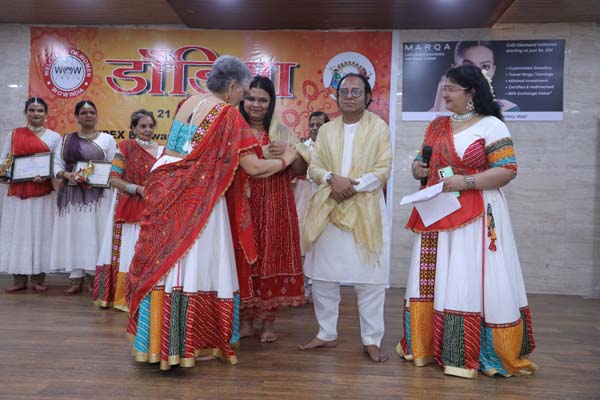 इसके बाद प्रस्तुति थी सदा की भाँति WOW India की Governing Body के सदस्यों उल्लास और उत्साहपूर्ण गरबा/डाण्डिया की, जिसमें भाग लिया डा शारदा जैन, श्रीमती बानू बंसल, श्रीमती लीना जैन, डा रूबी बंसल, डा दीपिका कोहली, डा रश्मि अग्रवाल, डा प्रिया आर्या, डा इंदु त्यागी, श्रीमती सरिता रस्तोगी और सुश्री अर्चना ने | अत्यन्त भव्य नृत्य को Choreograph किया था सुश्री अर्चना ने |
